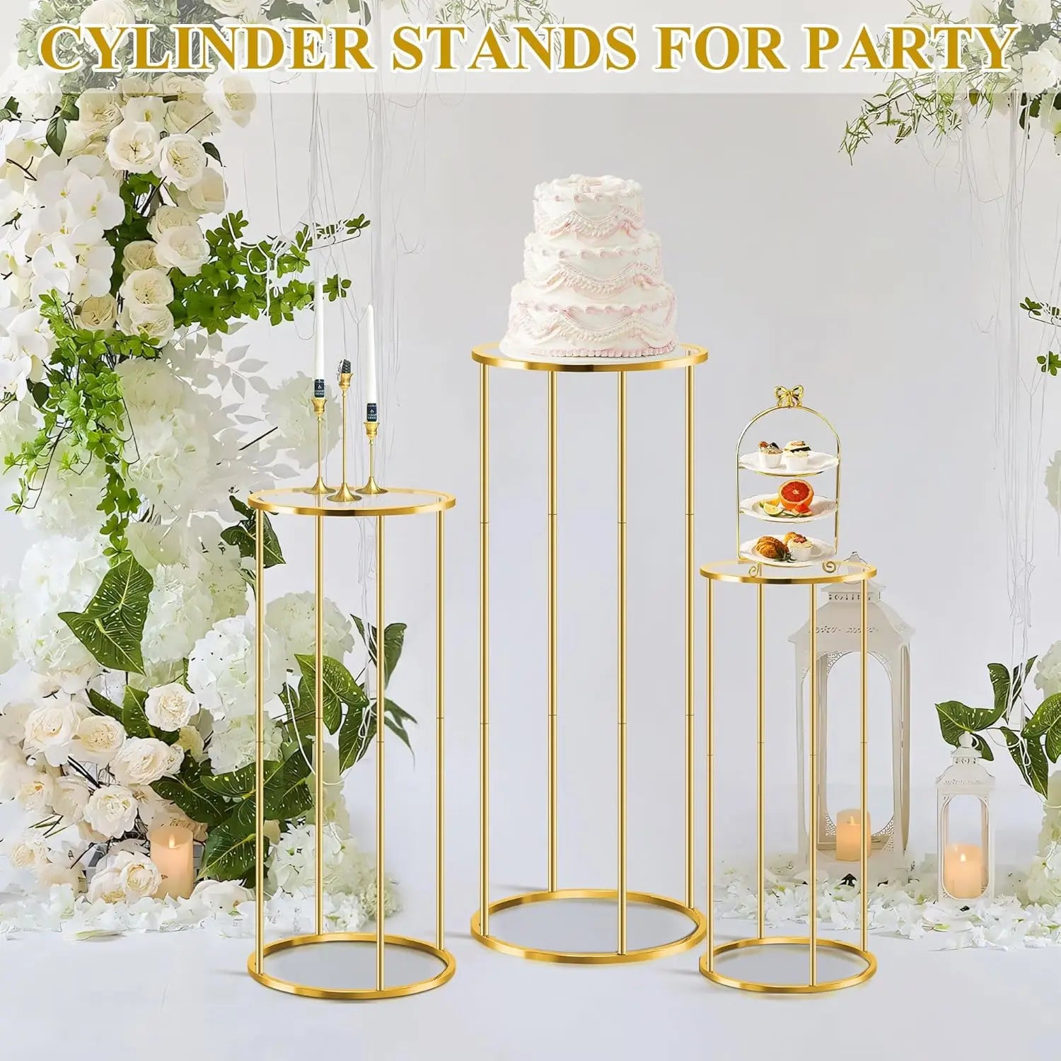 3 Pack Metal Cylinder Stands - Multi-Use Pedestal for Cake, Plant, Dessert Table | Party Decor