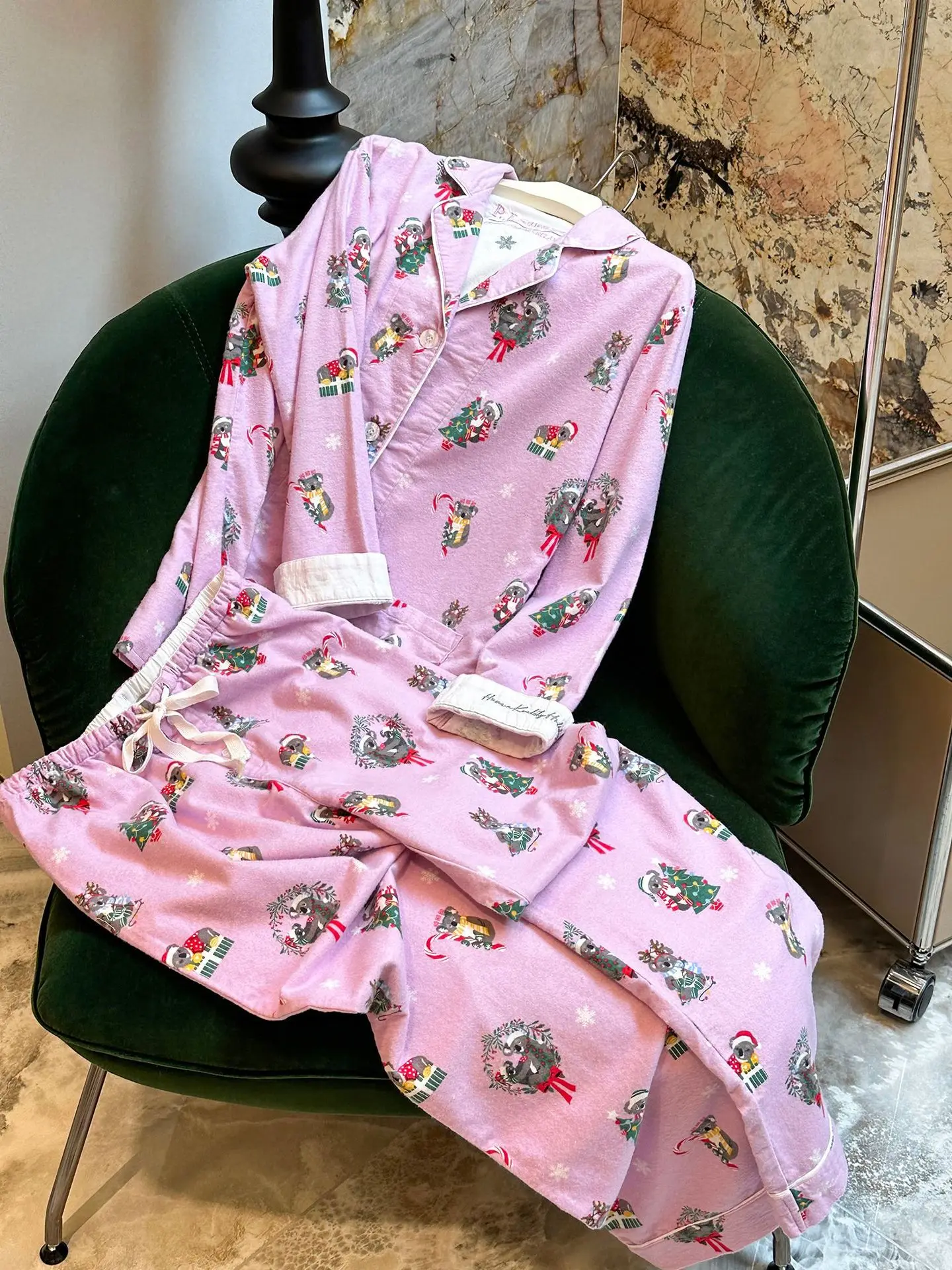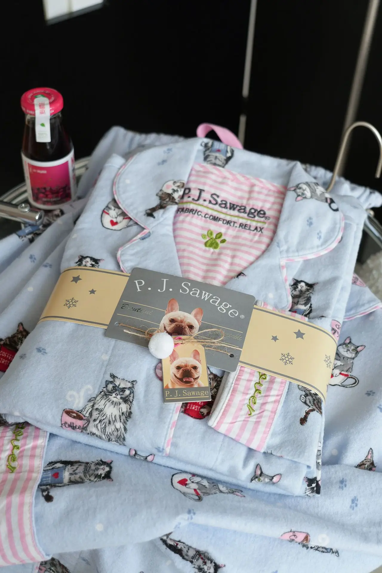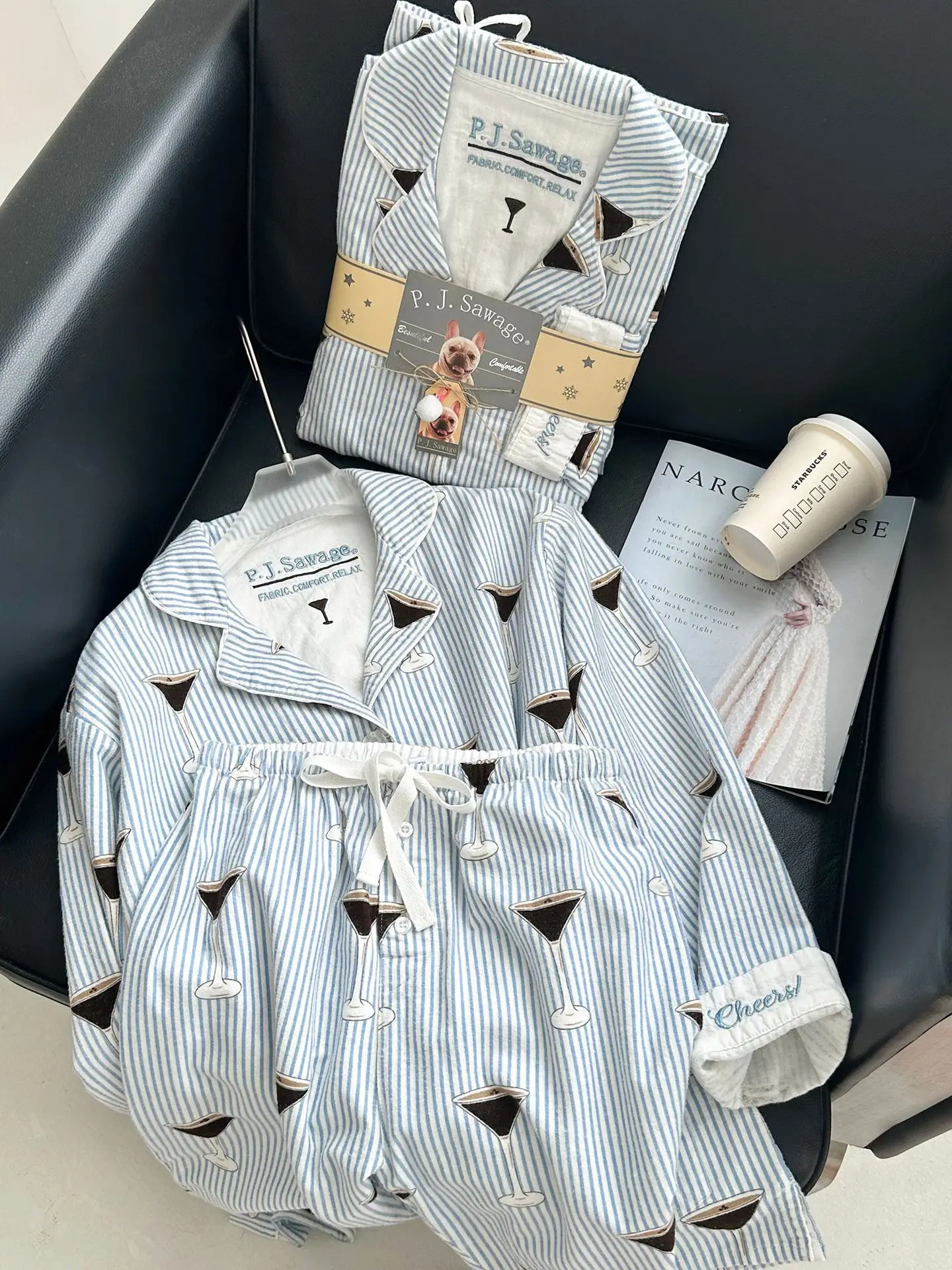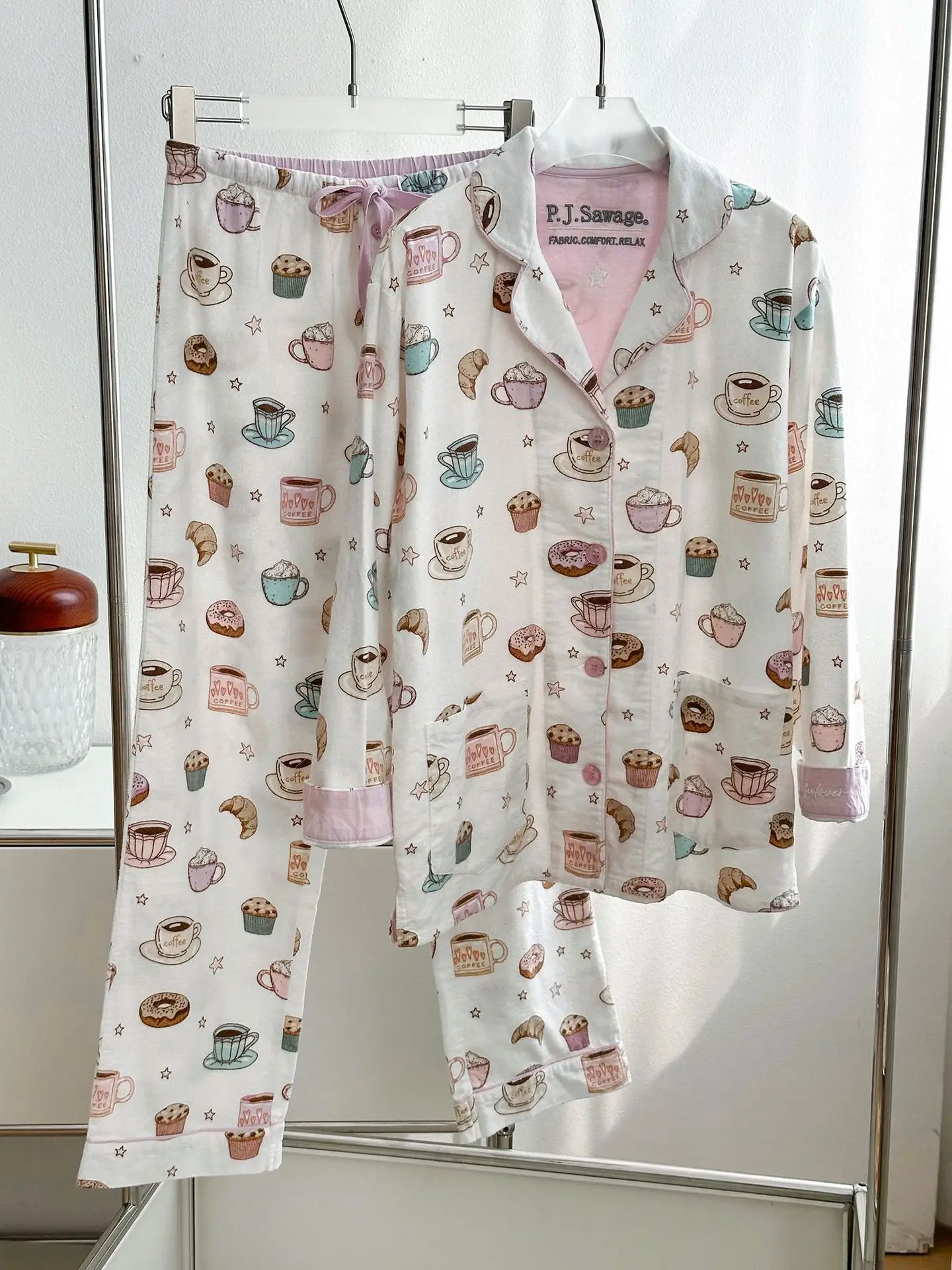 Japanese 100% Cotton Cute Cartoon Printed Pajamas Women's Spring Autumn and Winter Comfortable Loungewear Set Casual Sleepwear