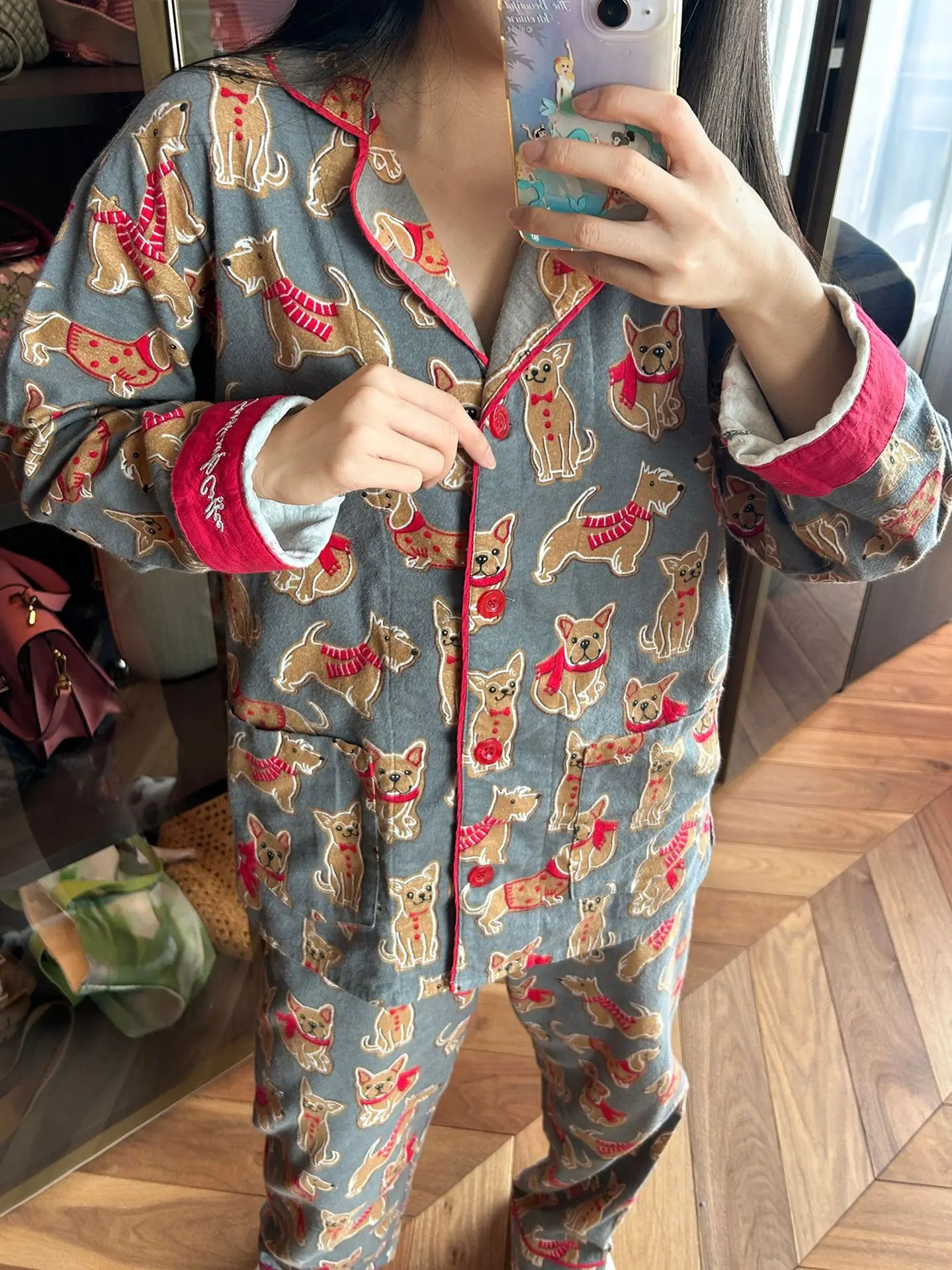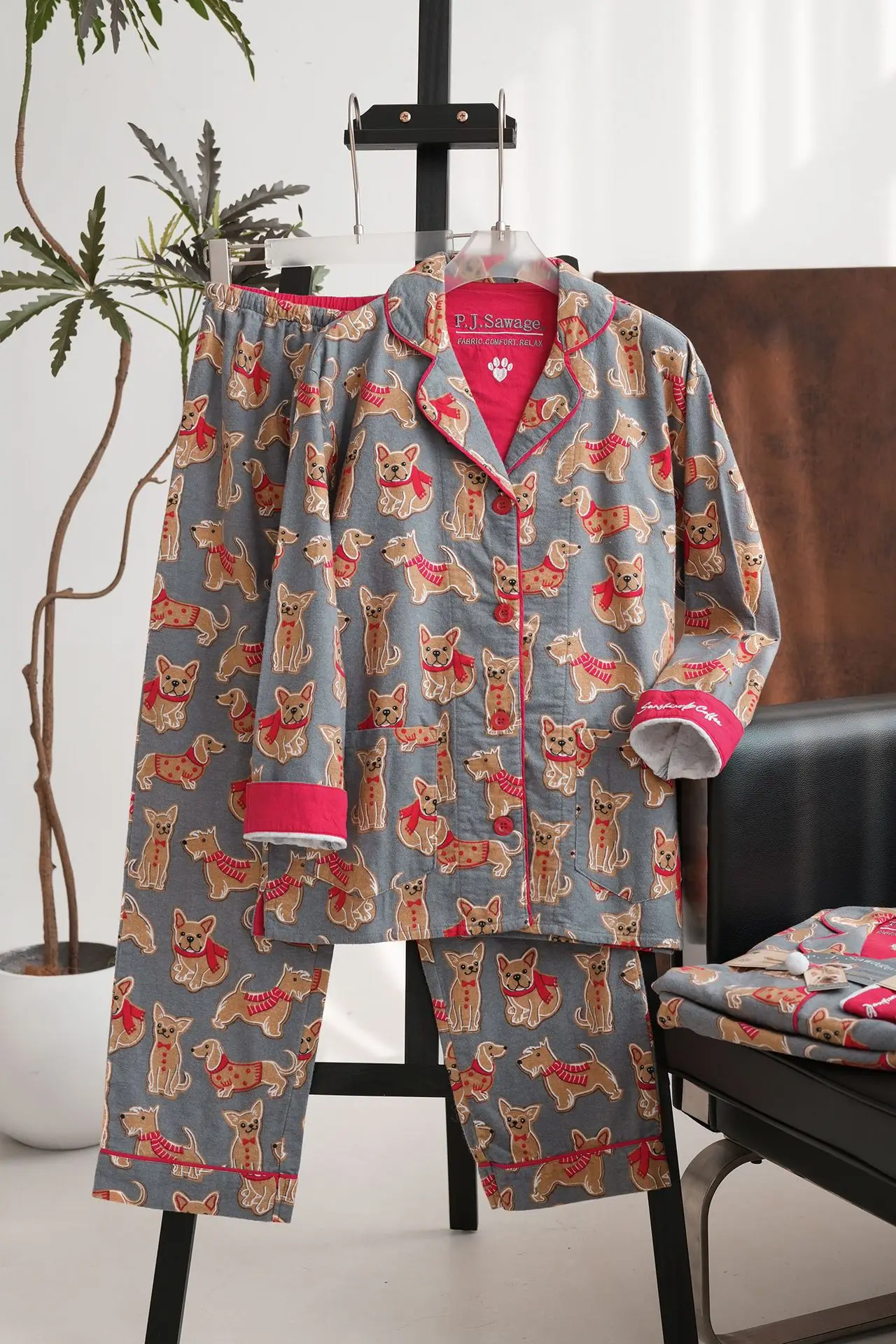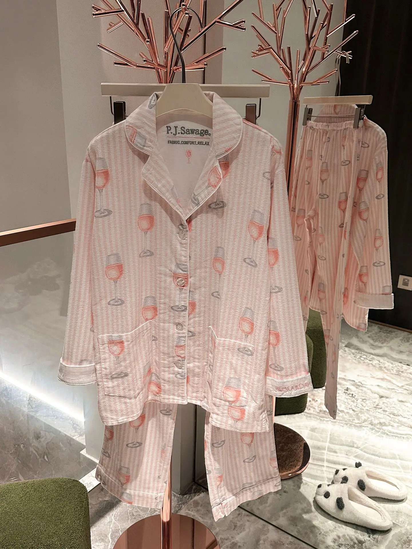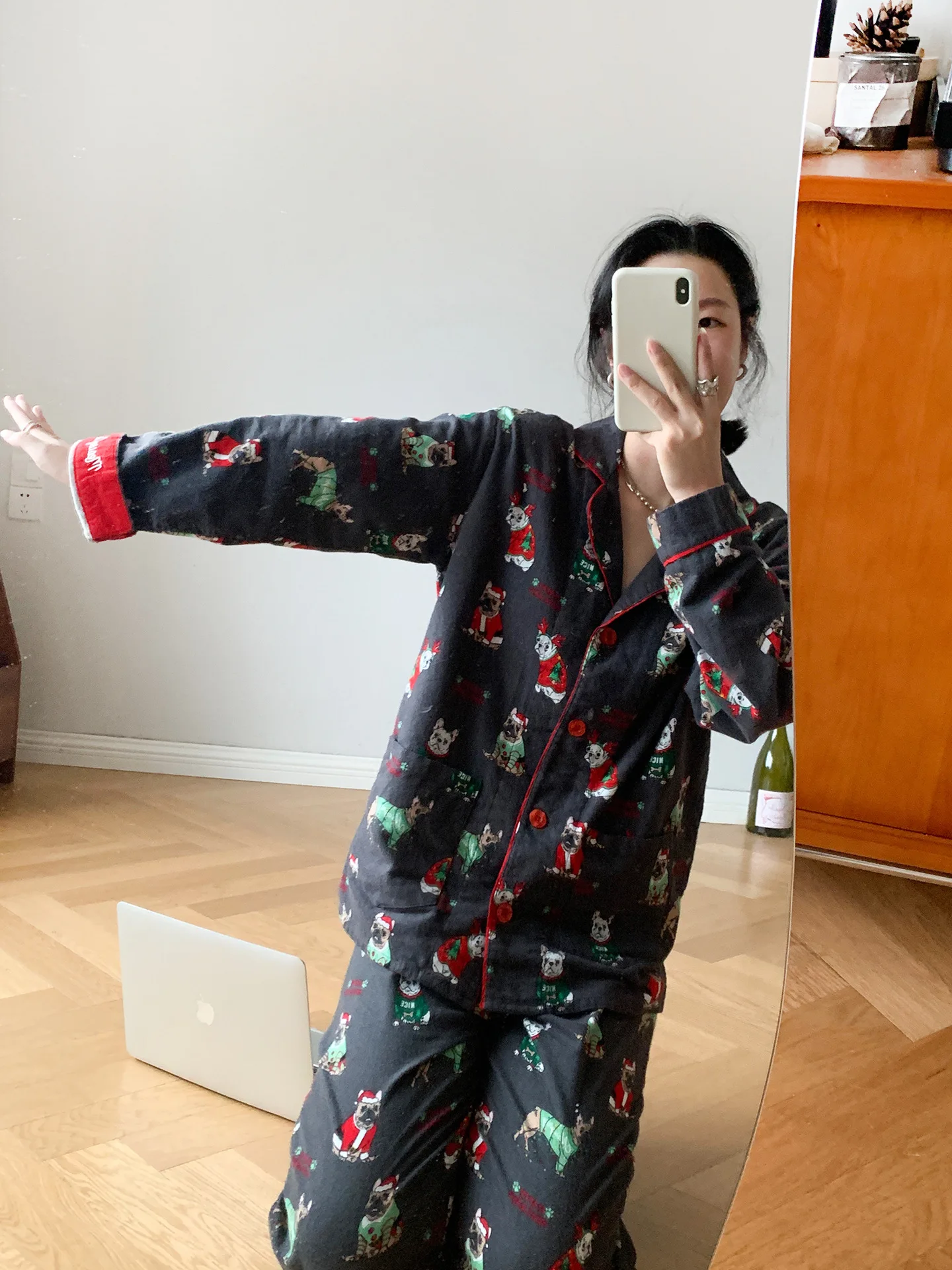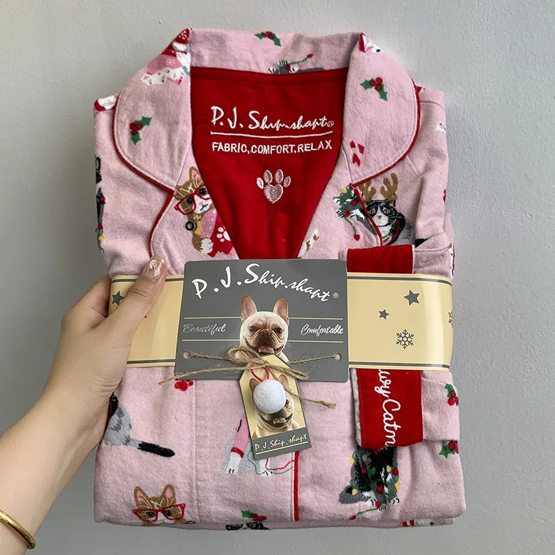 Japanese 100% Cotton Cute Cartoon Printed Pajamas Women's Spring Autumn and Winter Comfortable Loungewear Set Casual Sleepwear
